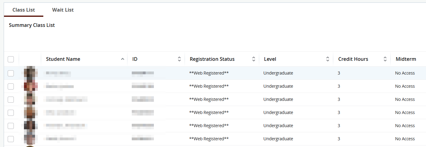 Please note that the instructions in this section refer to the vendor-provided Class Lists rosters. These are only available to the faculty to view their own class rosters. Many details, such as major, email, and student level, are missing from these lists. To view a more comprehensive version of class lists with major, email, and other useful details, please refer to this section. Class Lists Export to Excel