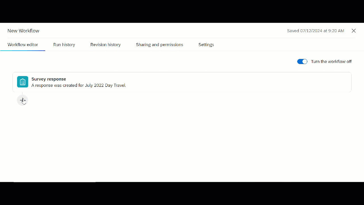 6.  Select the plus sign + under Survey response and select Task. Then select Email.