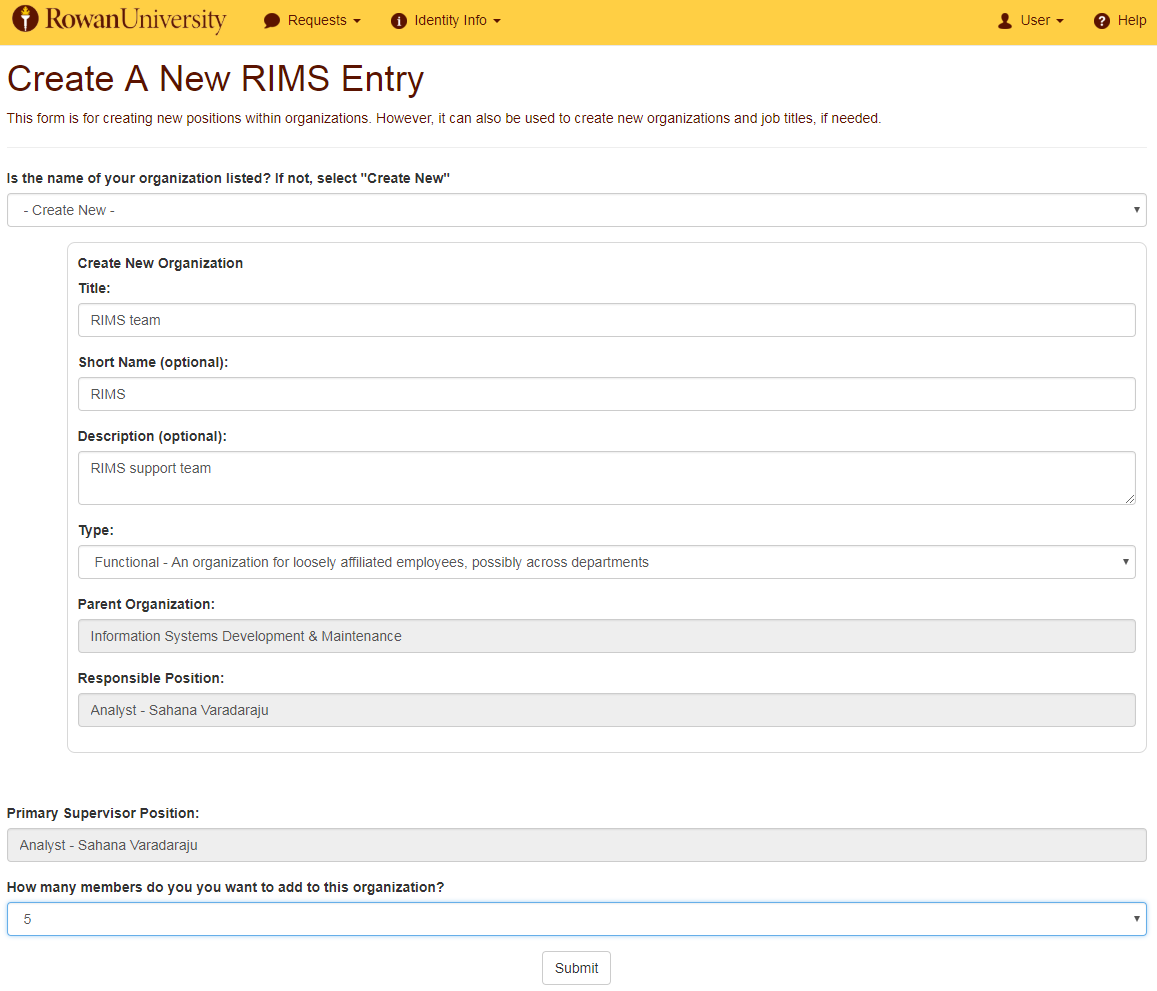 5. Enter the number of members you would want to add to the functional organization and click Submit