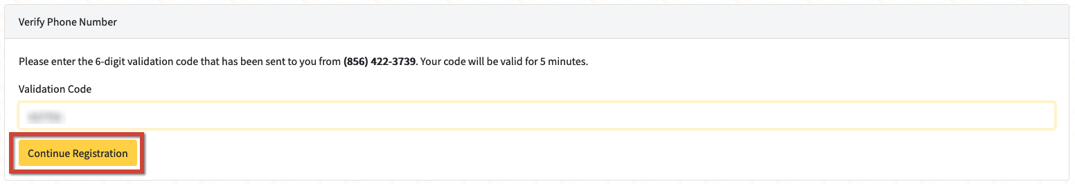 5. Enter and verify your phone number, select your device platform and click Continue Registration.