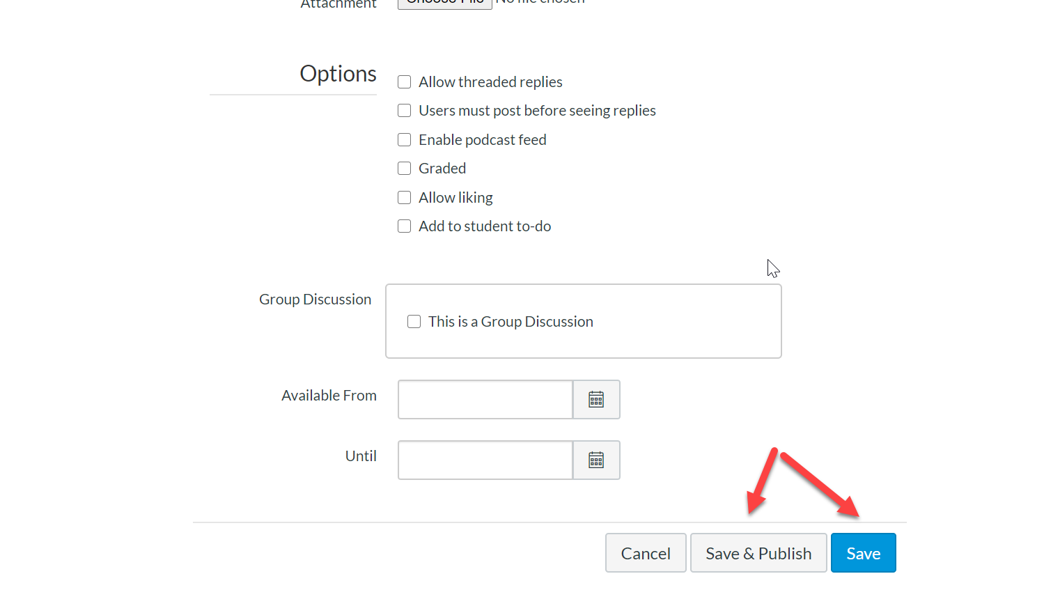 - Once you've selected your media, you can choose Save & Publish or Save. It will then appear in the discussion or assignment.