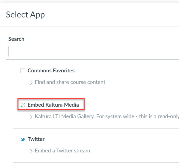 - The Embed Kaltura Media tool then gives you access to your My Media library. Click Select next to the video you would like to appear.