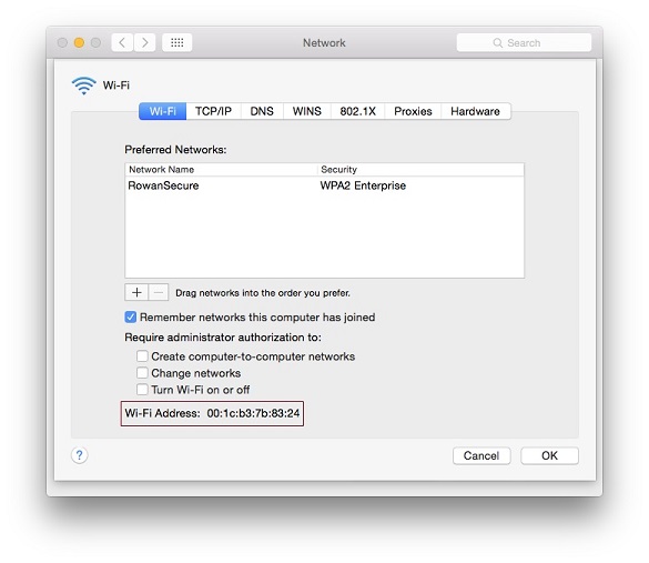 Look at the bottom of the window for "Wi-Fi Address," this is the machine's MAC Address.