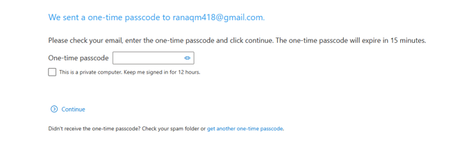 5. Type in the one-time password and select This is a private computer and click Continue.