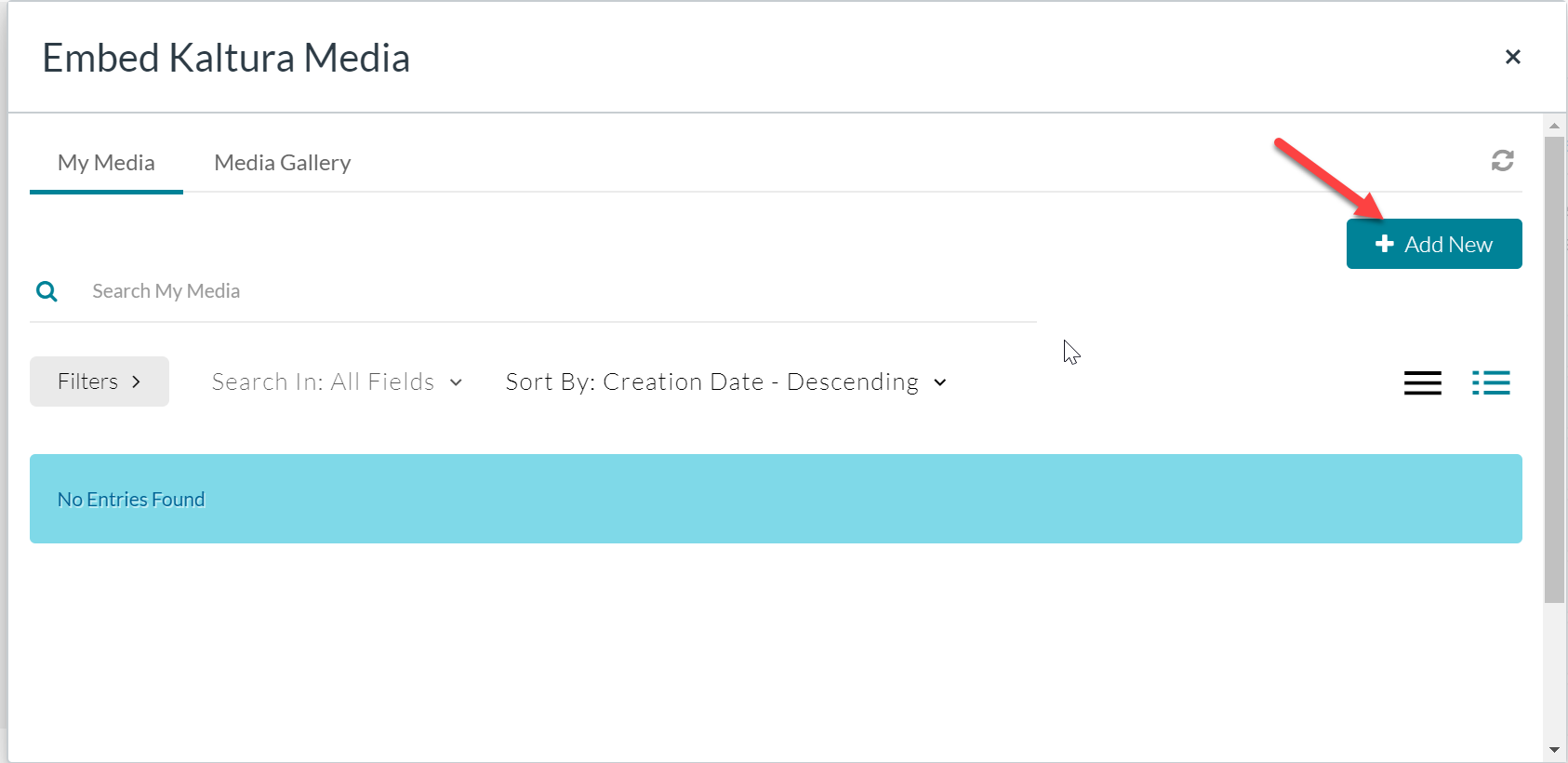 You can add media using the Embed Kaltura Media tool. This can help you keep your course organized by allowing you to add the media to a specific content area or folder.