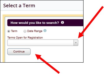 - Select the Term you want to register for from the drop-down menu