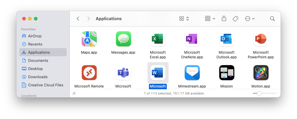 - Navigate to the Applications folder and launch one of the Office applications (e.g.: Microsoft Word).