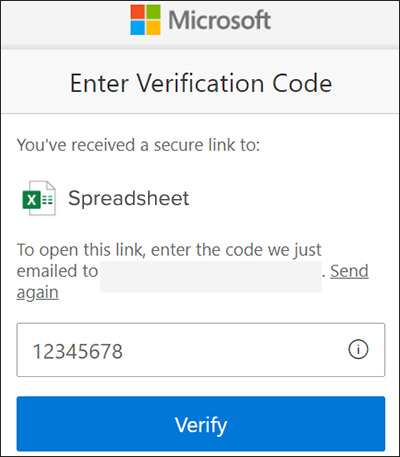 Guests don't need a Microsoft account in order to verify their identity. They will receive a code to enter into a verification screen in order to open the file. The content is secured and the link won't work if it's forwarded to others – it only works for people you specified when you shared the file.