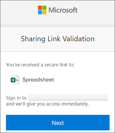 When a file is shared with someone who has a Microsoft account, OneDrive asks them to sign in to that account: