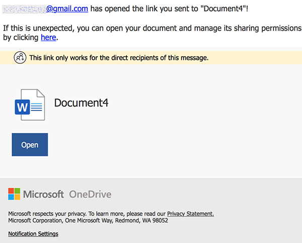 Once your guest accesses the file, you will receive an email notification that looks like this: