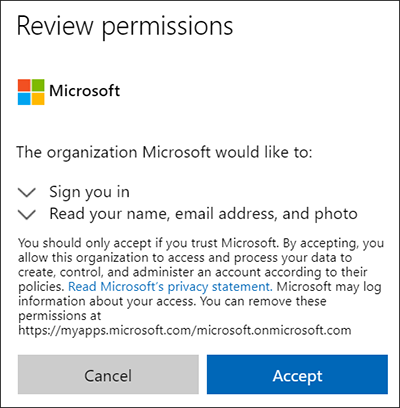 Next, OneDrive requests permission to view their name, email address, and photo to verify their identity: