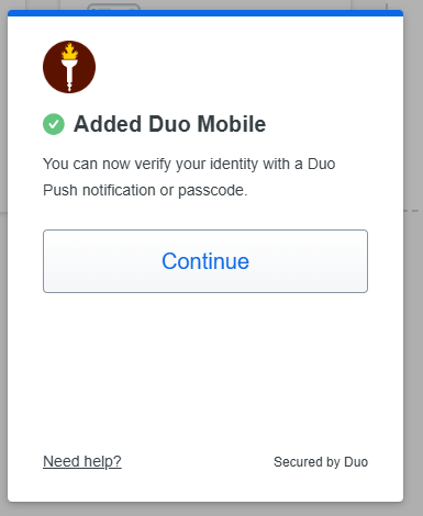 - Your device registration is now complete, and you can start using the Duo Mobile app!