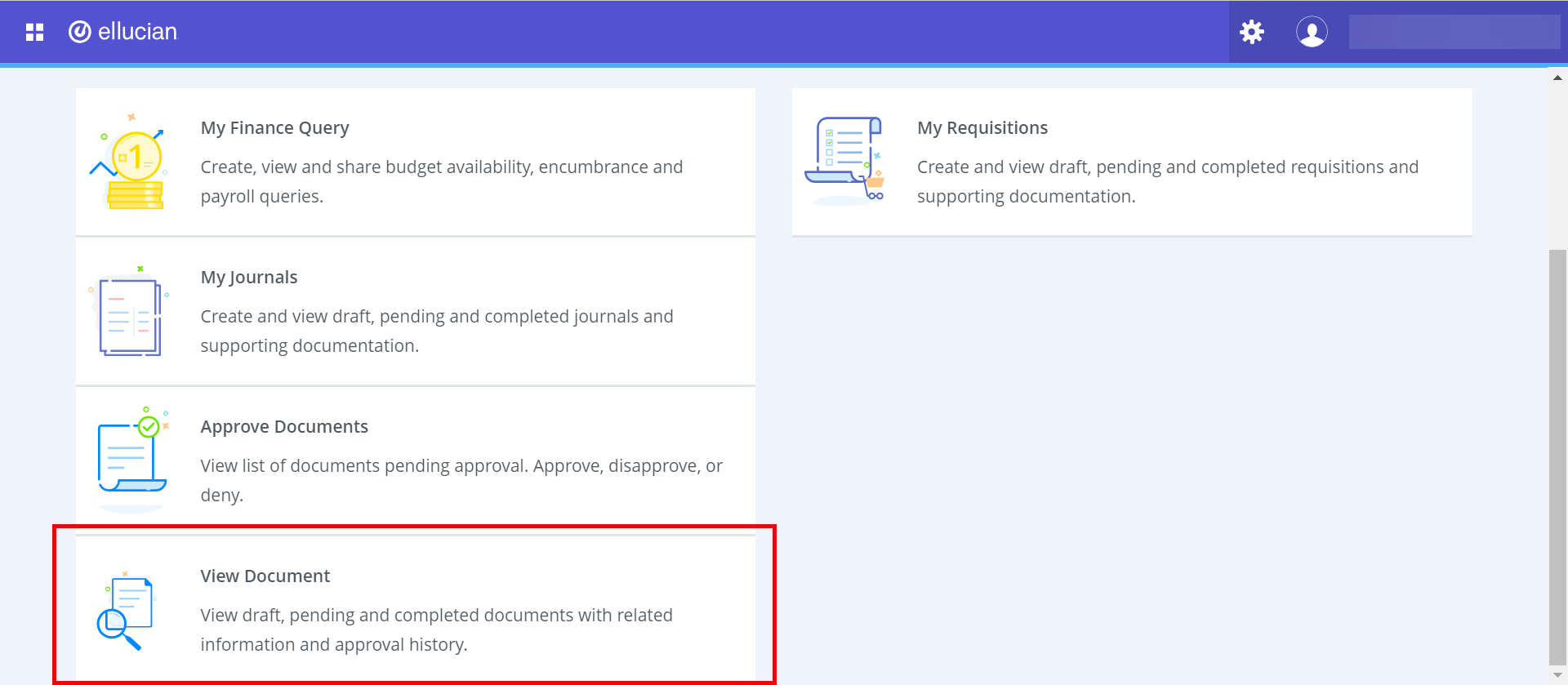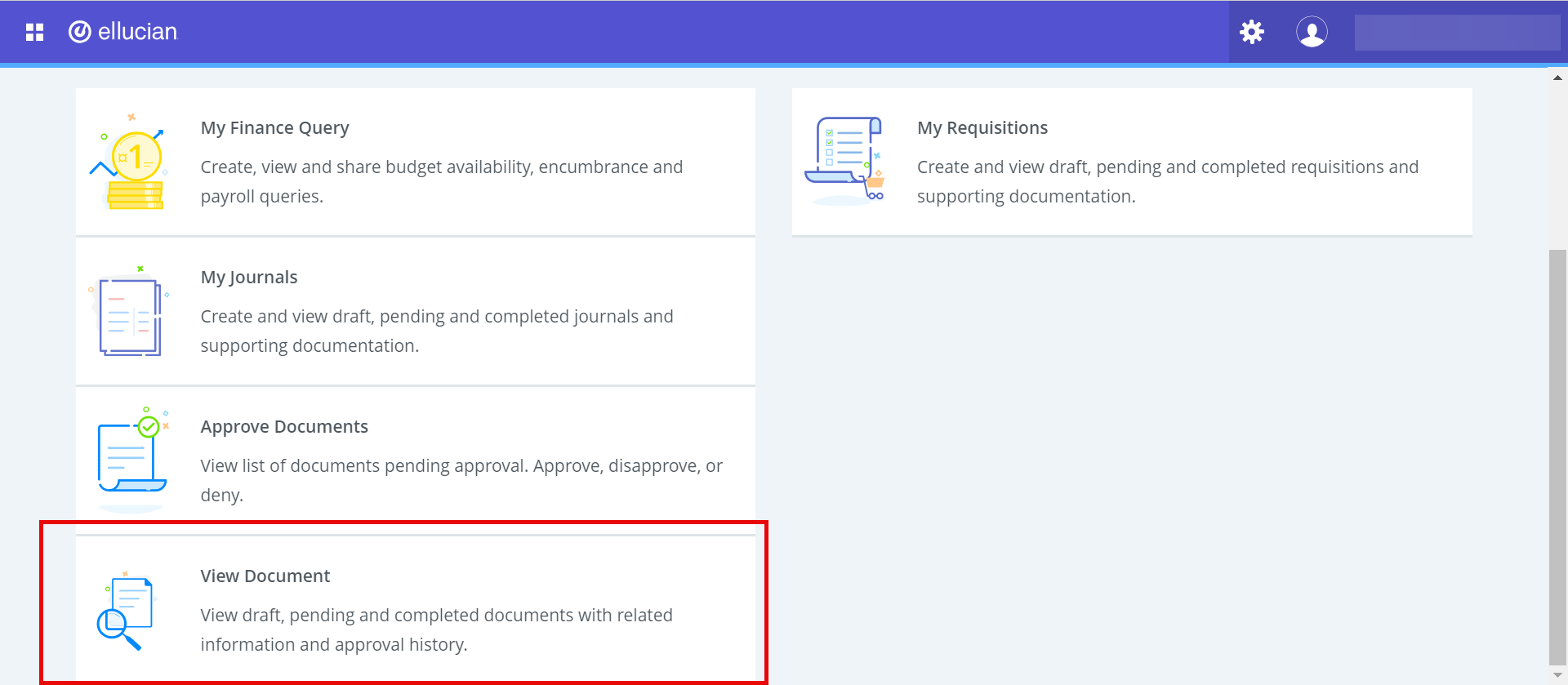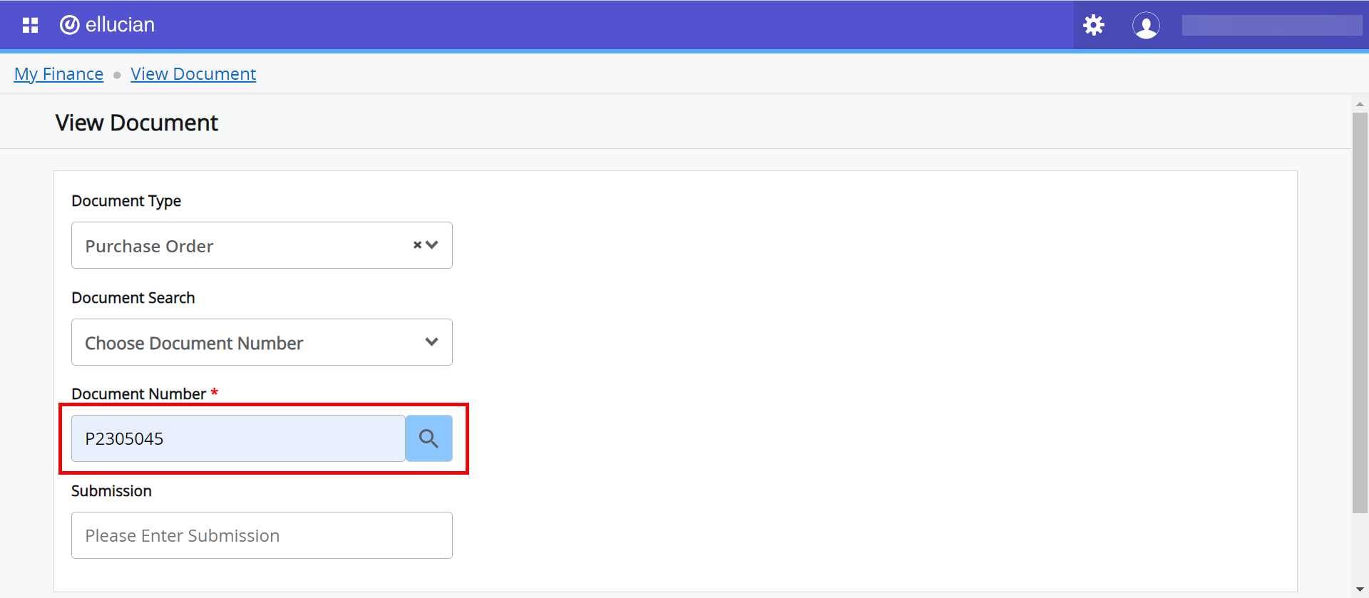 Users can view various document types in the View Document module, such as purchase orders, requisitions, and a budget transfer (a type of journal voucher). You can also search for a document by user. In this article, you will learn how to search for a document in the View Document module in Self-Service Banner 9.