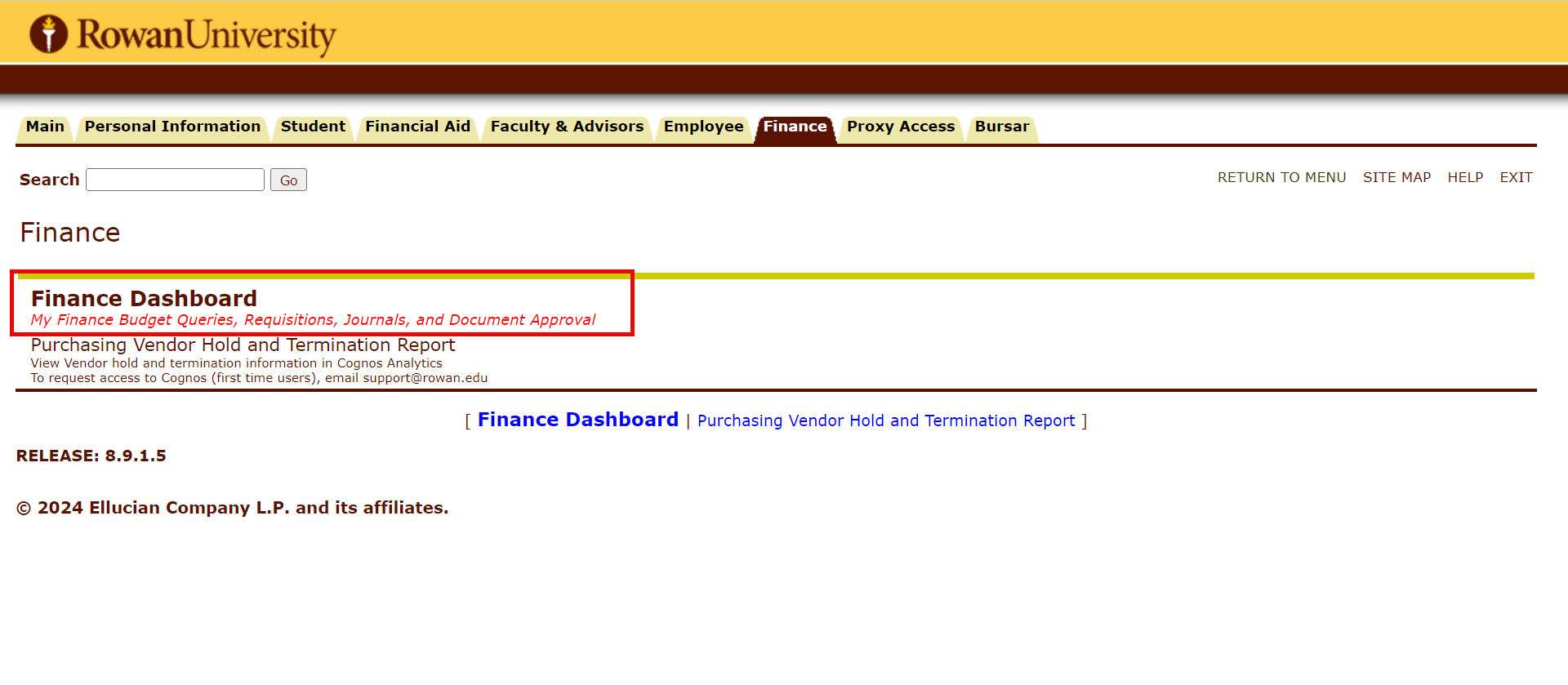 Request through the Rowan Support Portal ---- go to the Request Something section, select the Access and Security category, and select Banner Finance Permissions. Note: All access requests must be approved by the appropriate Supervisor (Manager, Department Head, Faculty member, or Principal Investigator (Grants).