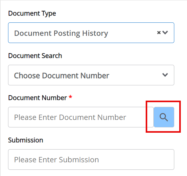 - Skip Document Search and enter the document number under the Document Number category. Note: You must enter the document number.