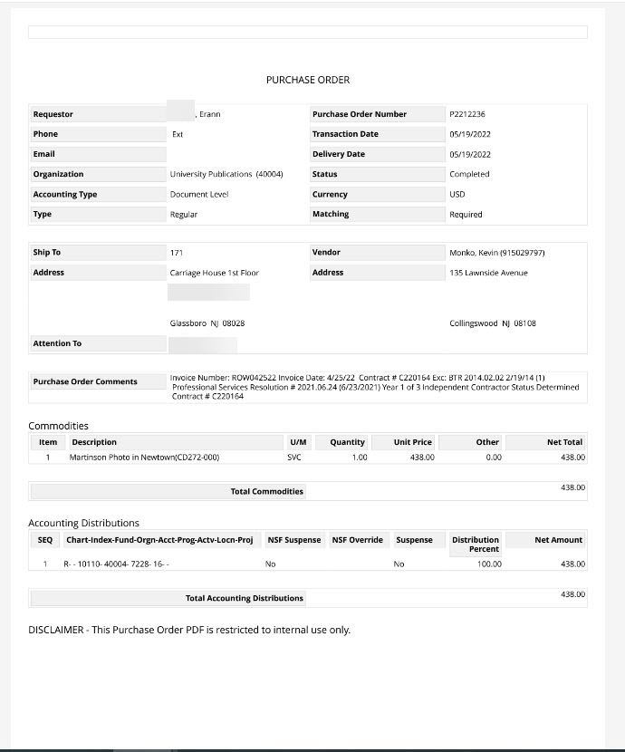 - You can now view the transaction and delivery dates, accounting type, and distribution. Note: This PDF is for internal use only! If you are searching for a PO, please note that if the approver is no longer at the university then the PO will come up with an error message when you search for the item. This is a known issue. For now review the PO in Banner Administrative Pages and open FOIDOCH.