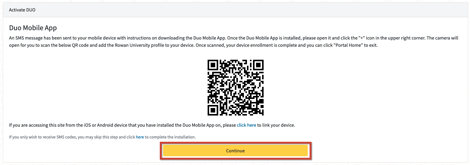 10.  Once you've set up Duo Mobile, click Continue.
