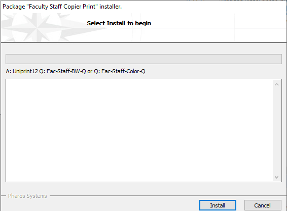 - To install a local network printer, select Universal Printer Installer and select Install. To install a distributed copier/printer, select Install Employee Color Copier/Printer or Install Employee Black & White Copier/Printer, depending on the printer you are installing. Then select Install.