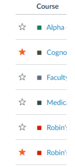 Note: Empty star = course is hidden on your dashboard; Filled star = course appears on your dashboard