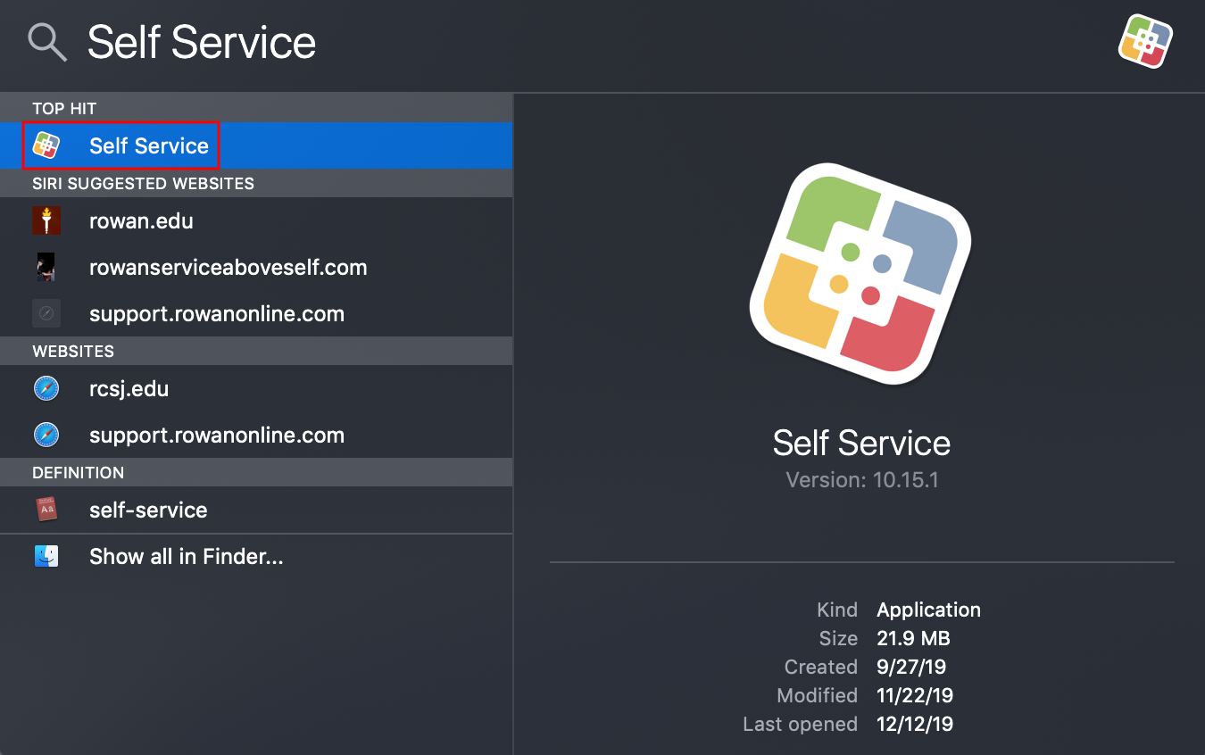 1. Click the magnifying glass icon located at the top right-hand side of the screen by the system date and time and type Self Service