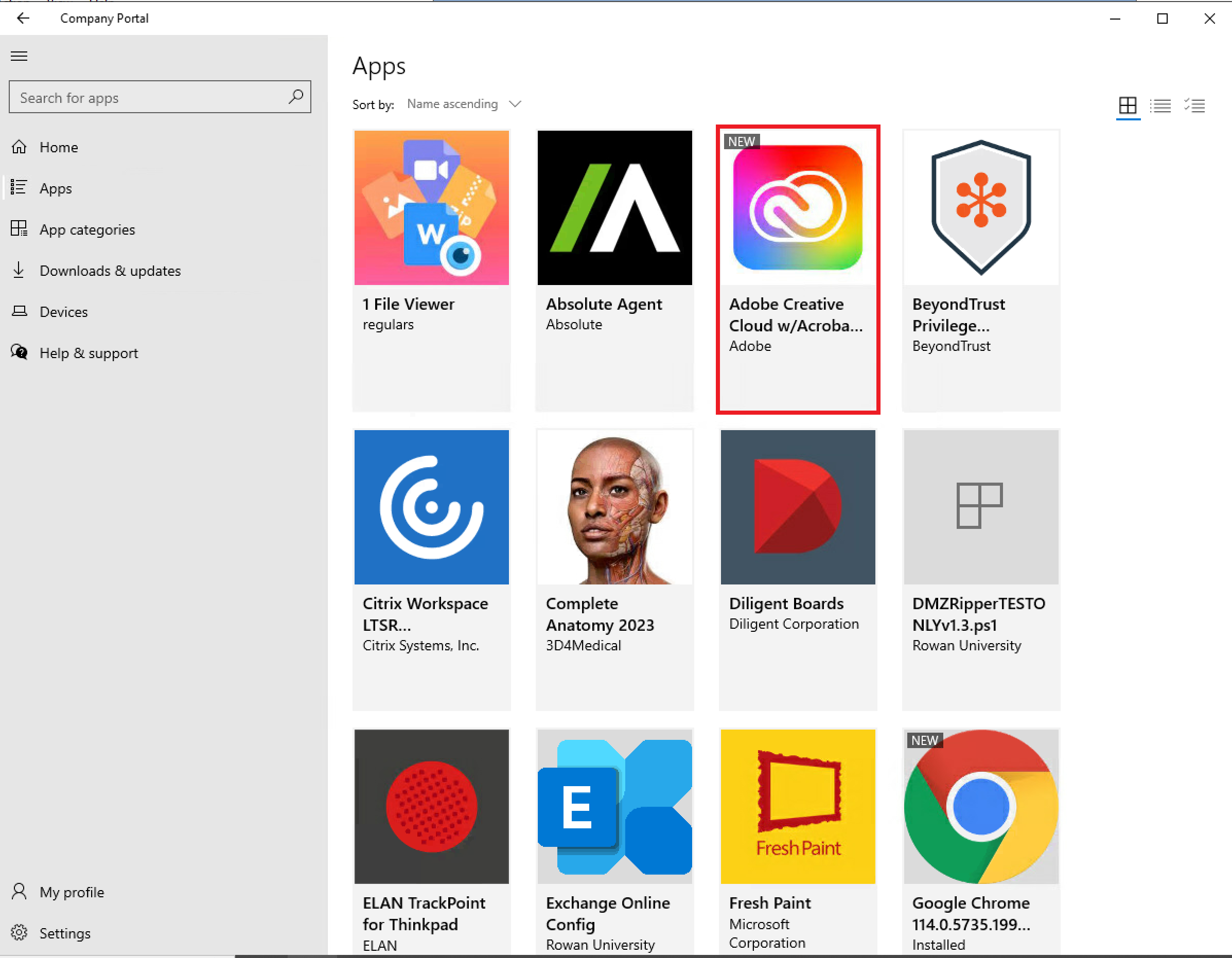 2. From the "Company Portal Apps" window, click Adobe Creative Cloud w/Acrobat