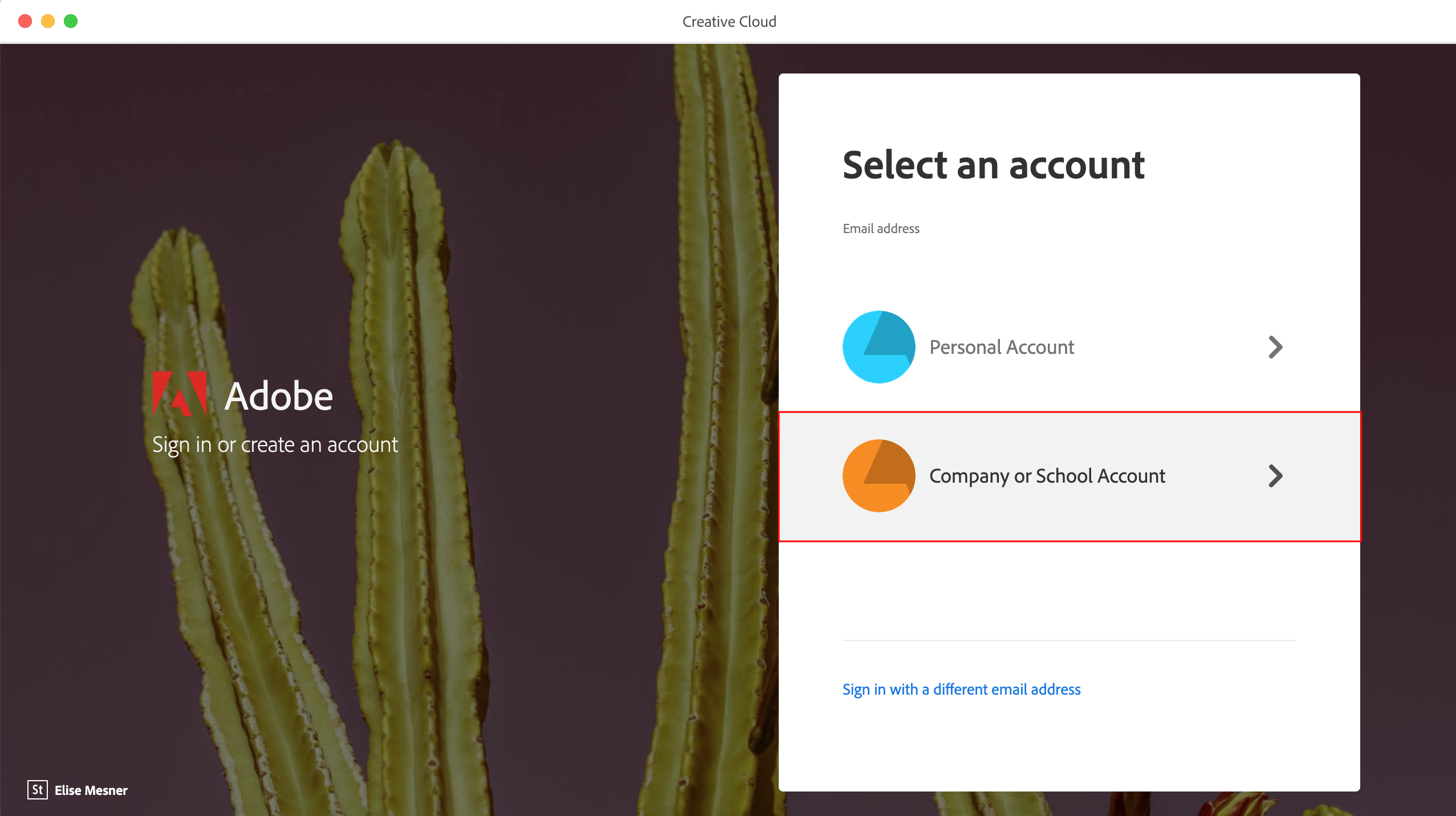 6. After the Adobe Creative Cloud Desktop launches, enter your Rowan University email address and click Continue